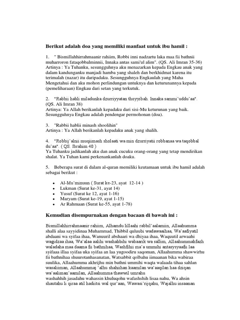 Allahummah fazh waladii ma daama fii bathnii. Kami tidak mengetahui adanya doa khusus atau dzikir khusus untuk ibu hamil, baik dari dalil alquran maupun hadis yang shahih. Berikut doa yang dapat dipanjatkan ibu hamil agar bayi di dalam kandungan. Engkau sebelum itu termasuk orang yang tidak mengetahui. Terdapat doa dan dzikir yang bagus dibaca perempuan selama hamil.
